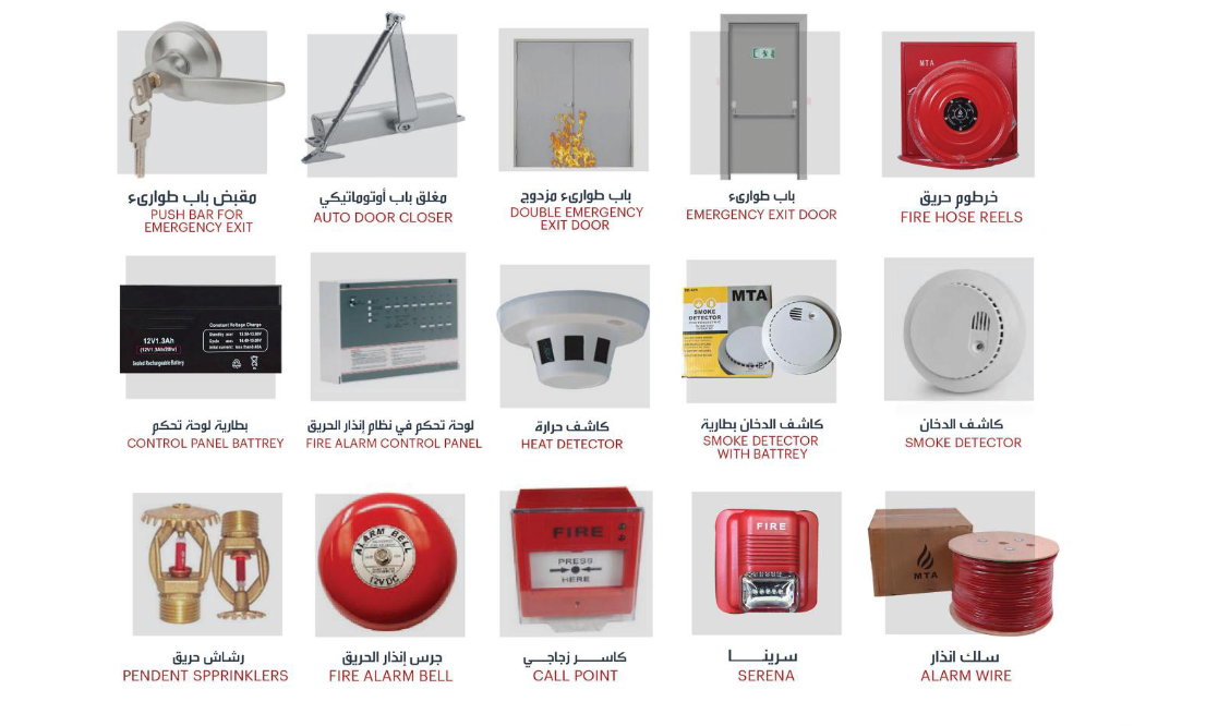 تركيب وصيانة أنظمة إطفاء وإنذار الحريق للمباني السكنية والتجارية والصناعية وفقاً للمواصفات المعتمدة.
